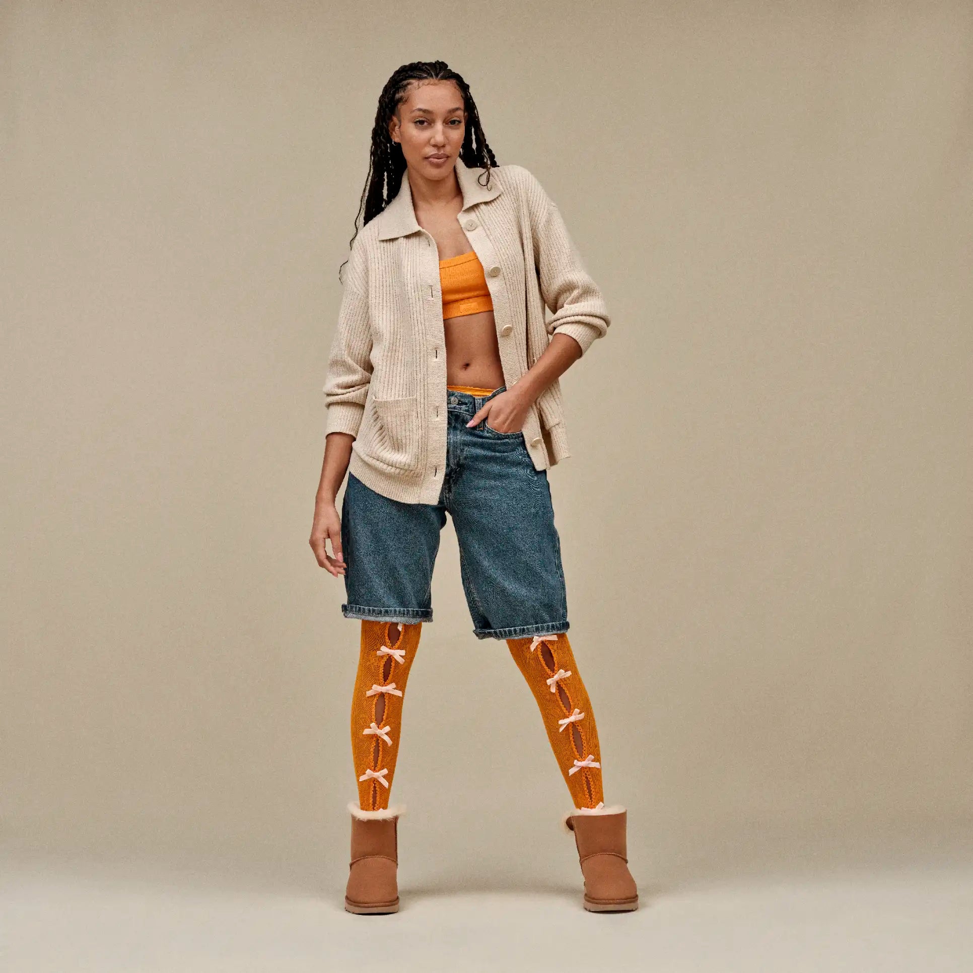Nous avons ajouté des nœuds soyeux à notre icône pour en faire un modèle encore plus joli et féminin. Cette botte polyvalente confectionnée en peau de mouton douce offre deux nouveautés : prétraitée à l’extérieur, elle résiste désormais à l’eau, et est équipée d’une semelle légère qui assure amorti, durabilité et adhérence. De plus, elle se marie avec presque tout : une tenue de sport décontractée ou encore une robe fluide.
