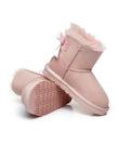 The iconic design makes these Classic Mini Bow UGG Boots a timeless addition to the wardrobe. Featuring a sweet silky bow, your little ones will love wandering around in those fluffy sheepskin boots. Premium Australian double face sheepskin combines comfort and durability, and breathes to keep those little toes warm in winter and cool in summer. The plush wool insole delivers top-of-the-line comfort, and the soft rubber flexible outsole makes these boots ideal for indoor and outdoor wear. Comes with a special water-resistant coating that resist dirt and slows the penetration of water to keep the surface dry.