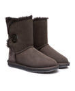 The iconic design makes these Luxe Classic Short Button UGG Boots a timeless addition to your wardrobe. Premium Australian double face sheepskin combines comfort and durability, and breathes to keep your feet warm in winter and cool in summer. A wood-button closure makes those boots even more versatile as they can be folded down to get a fluffy collar. The plush wool insole delivers top-of-the-line comfort, and the soft TPR flexible outsole makes these boots ideal for indoor and outdoor wear. They are made from top-grade leather for durability you can count on, and eco-friendly dyes are used to reduce their environmental impact. Comes with a special water-resistant coating that resist dirt and slows the penetration of water to keep the surface dry.