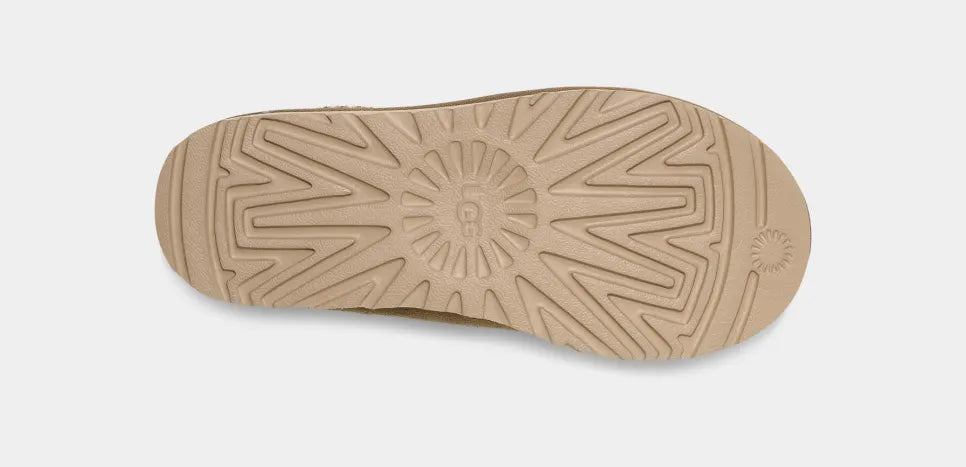 Chausson à porter en toute occasion, notre légendaire Tasman comporte la même semelle extérieure légère et résistante que notre botte Classic pour que vous puissiez le porter à l’intérieur comme à l’extérieur. Ce modèle pratique à enfiler est confectionné en daim doux, doublé de laine naturelle moelleuse et agrémenté d’une tresse Tasman brodée. À porter avec un jean boyfriend et un pull à mailles.