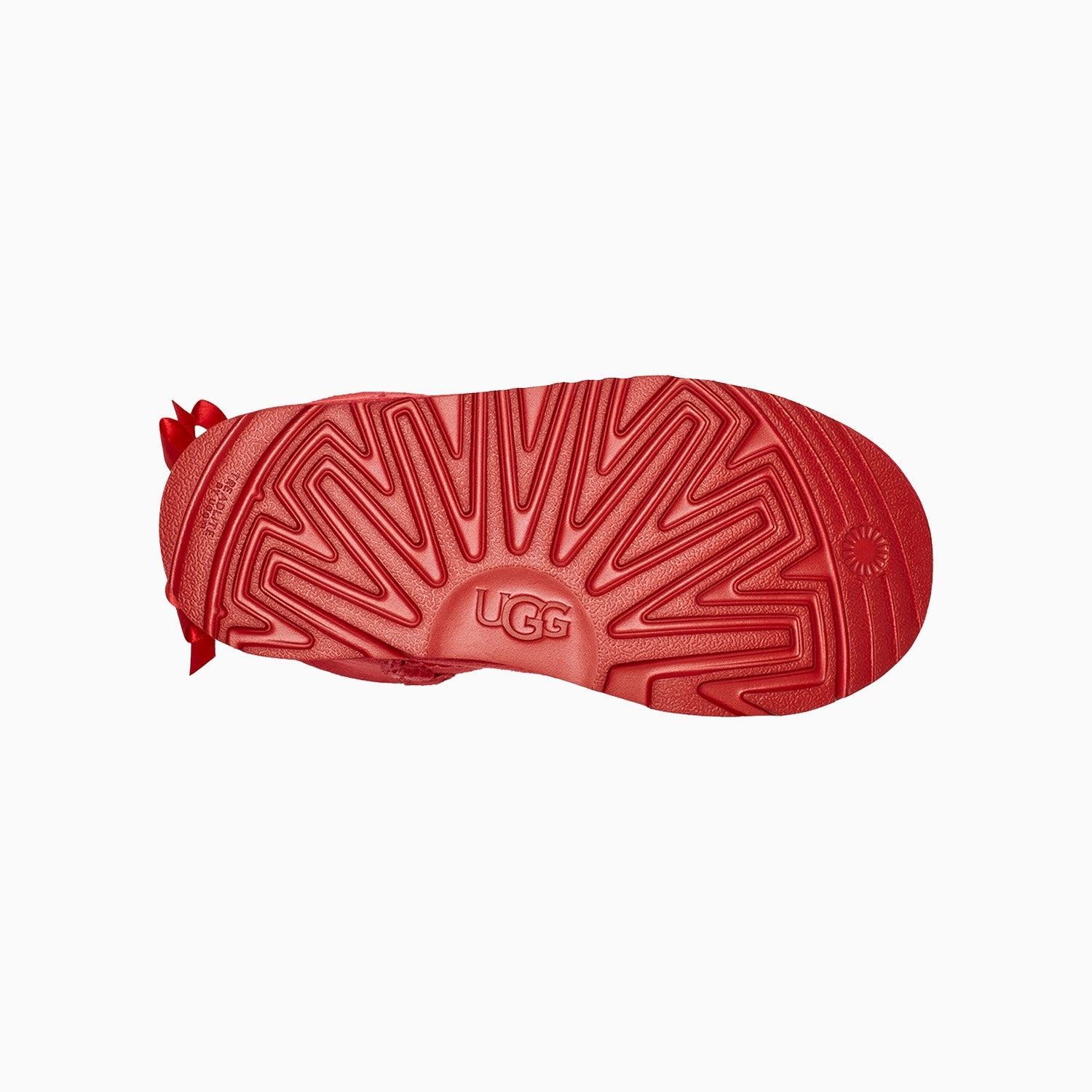 You got a destiny by UGG Kid's Bailey Bow Ii Boot featuring protected: post-applied treatment, topically applied water repellency treatment, 17mm Twinface sheepskin upper, fixed satin bows along back shaft, 17mm UGGpure™ wool insole, foam footbed, treadlite by UGG™ outsole for comfort, polyester binding, 6" shaft height, UGG Snow Boots, woven heel label with UGG® logo.