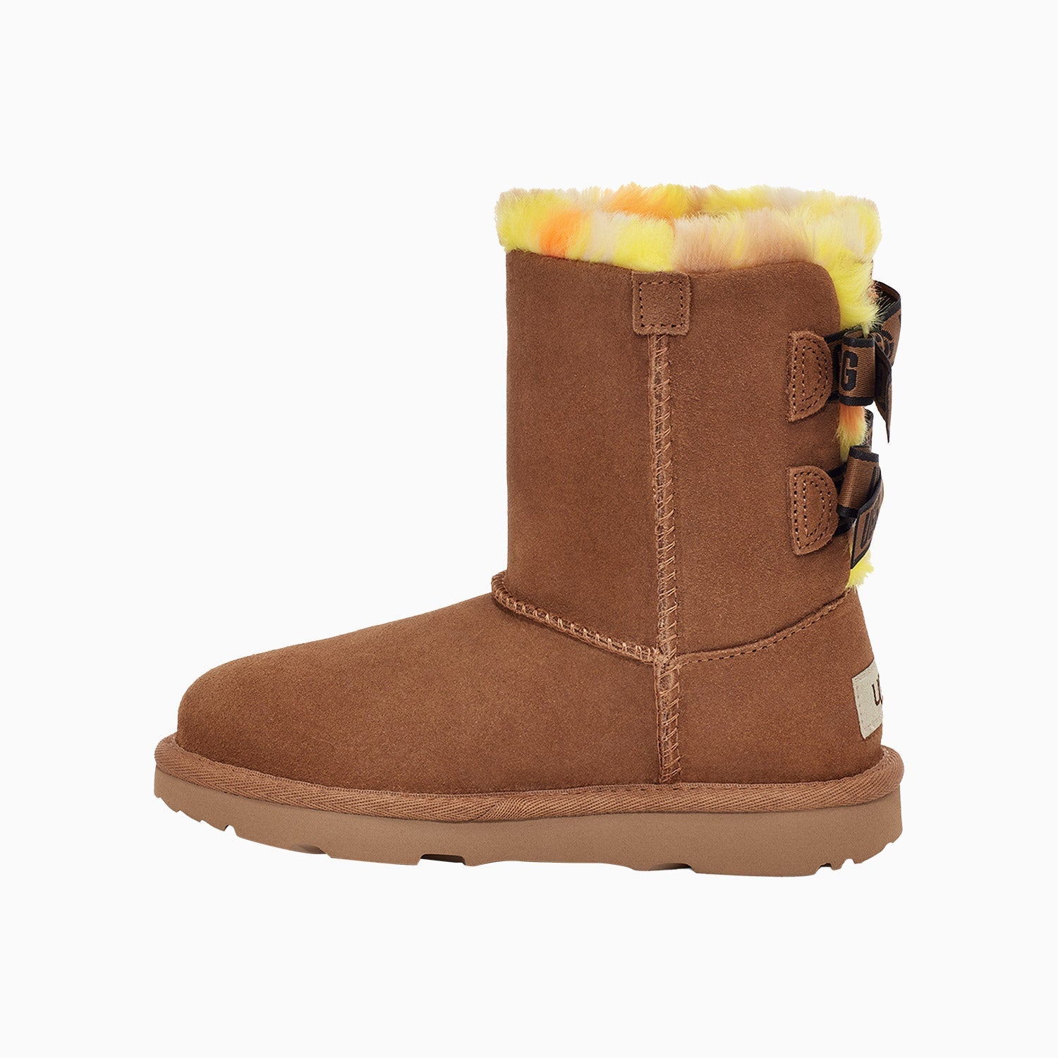 Our latest version of the Bailey Bow features exaggerated plaid fluff offering bold color and texture. Pre-treated to keep it looking better for longer, it's built for kids on the move with a super-lightweight outsole for traction and durability. Treadlite by UGG Proprietary compound which increases cushioning and traction for a supremely lightweight, ultra-durable sole. Post-Applied Treatment Treated to repel light amounts of water. The product should be re-treated periodically to maintain protection. Faux Fur Made with synthetic fibers woven together for a luxuriously fluffy feel.