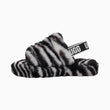 Glow like the fur of the Zebra by UGG Kid's Fluff Yeah Slide Zebra dyed sheep fur, rubber sole, 10mm sheepskin upper, elastic strap with UGG graphic, molded rubber outsole, 10mm sheepskin lining, 10mm sheepskin insole