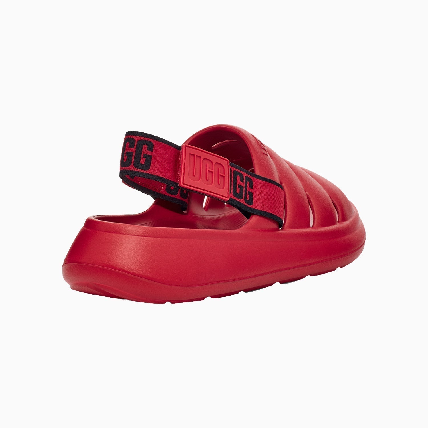 - UGG® webbing, Hook-and-loop closure, Removable heel strap, Adjustable heel strap