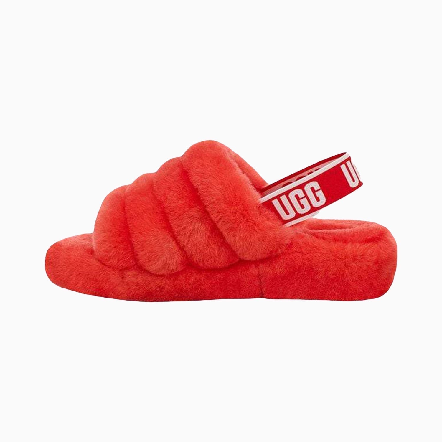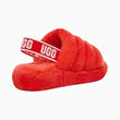 Restful days ahead with UGG Women's Fluff Yeah Slide features a 10mm sheepskin upper, elastic strap with UGG graphic, 10mm sheepskin lining, 10mm sheepskin insole, sheepskin-wrapped midsole, molded rubber outsole, 1.5" heel height, woven label with UGG logo on insole. A good easy-on choice for all.