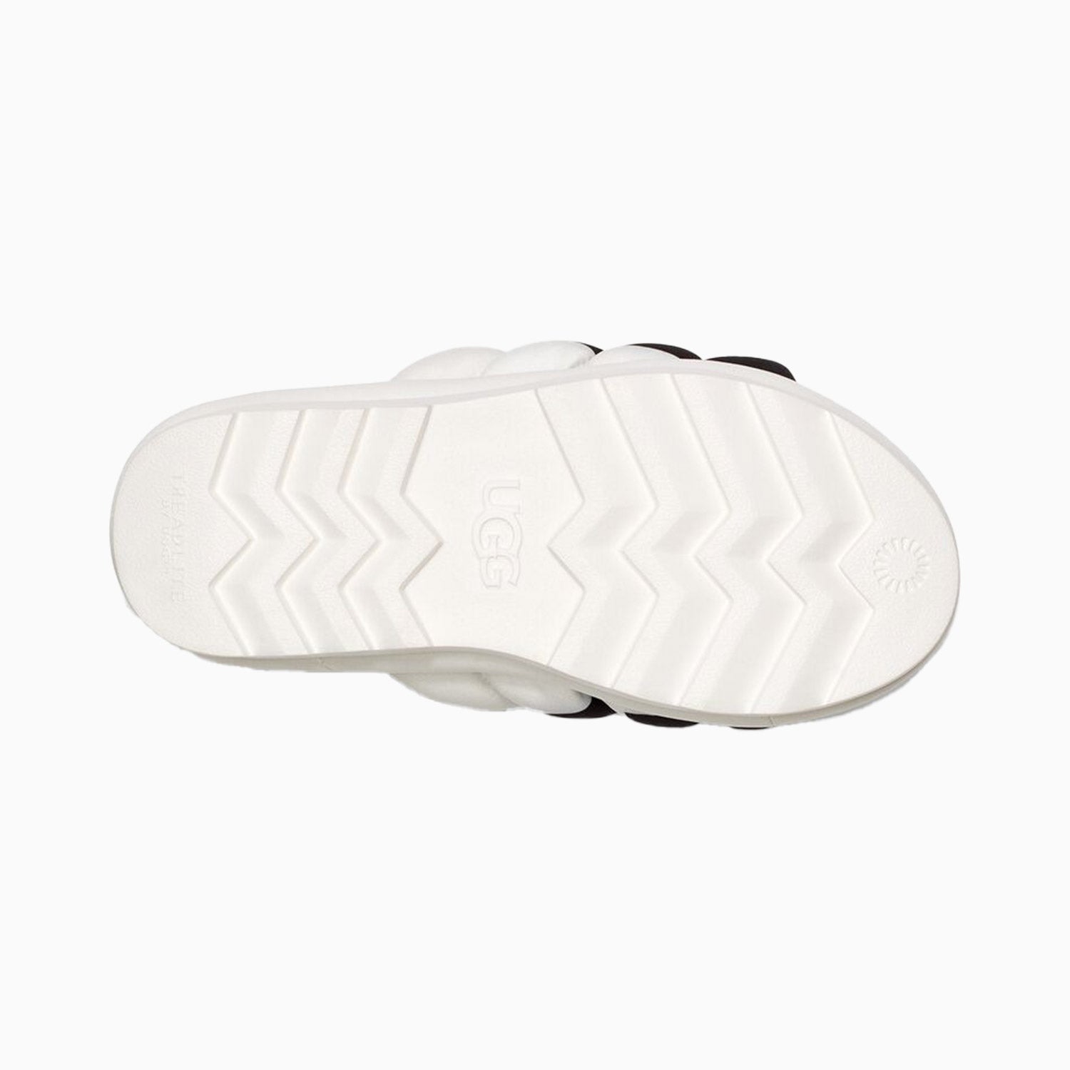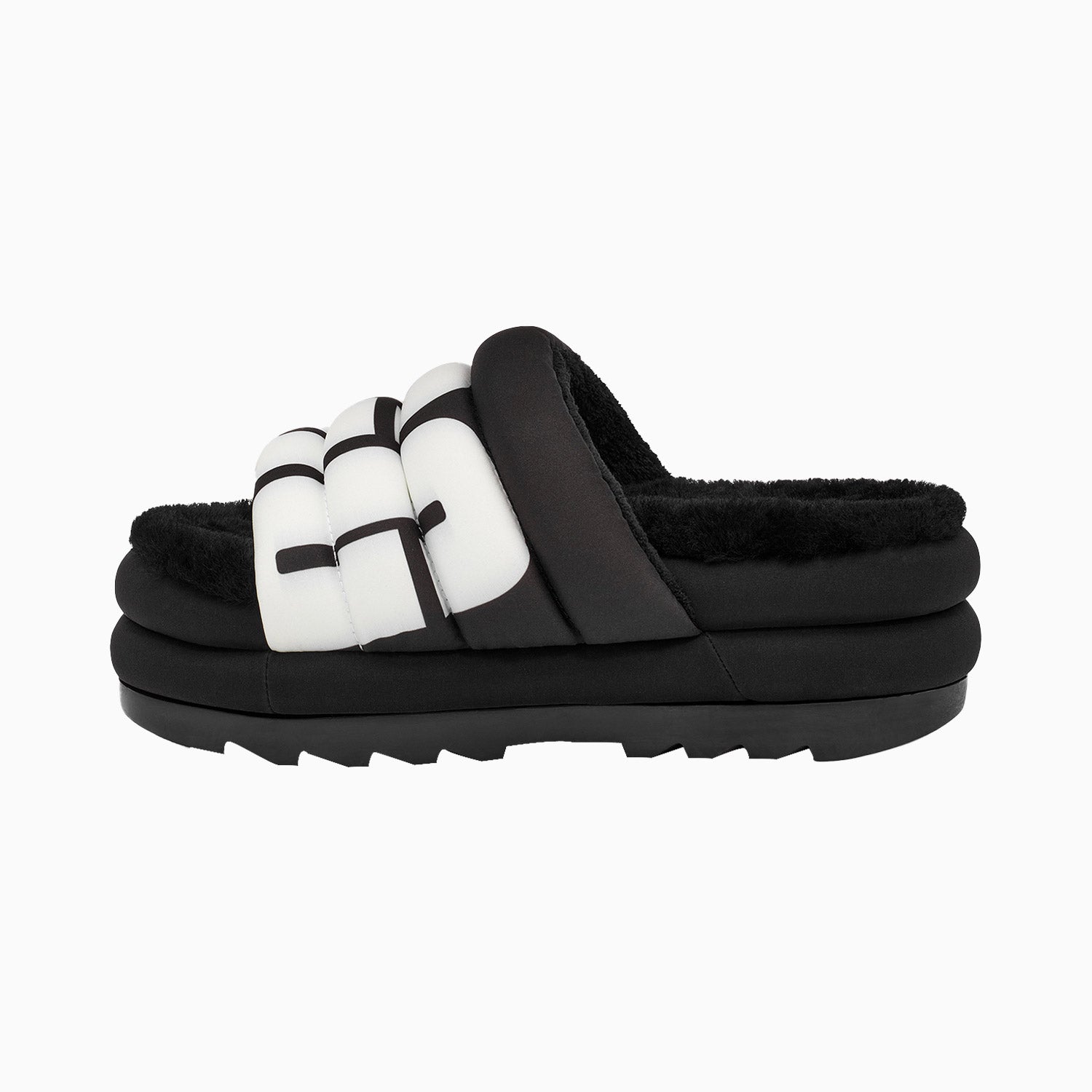 Extending the feeling of UGG to a spring-ready platform with lightweight puff uppers, the Maxi Slide is a statement sandal featuring our signature sheepskin insole and bold graphic logo print. Set on a maximalist 2.5" sole, it offers a leg-lengthening look and ultra-cushioned step. Pair with shorts, crop tops, and more the styling options are endless.