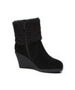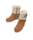 The Jonna Wedge Boots combine the best of footwear - style, and practicality. The upper is pre-treated with an invisible layer of nano-technology coating that repels liquids and stains which is ideal for maintaining the suede clean and fresh. To elevate the boots an extra curly wool collar decorated with a single buckle strap adds both luxe and warmth to your ankle.