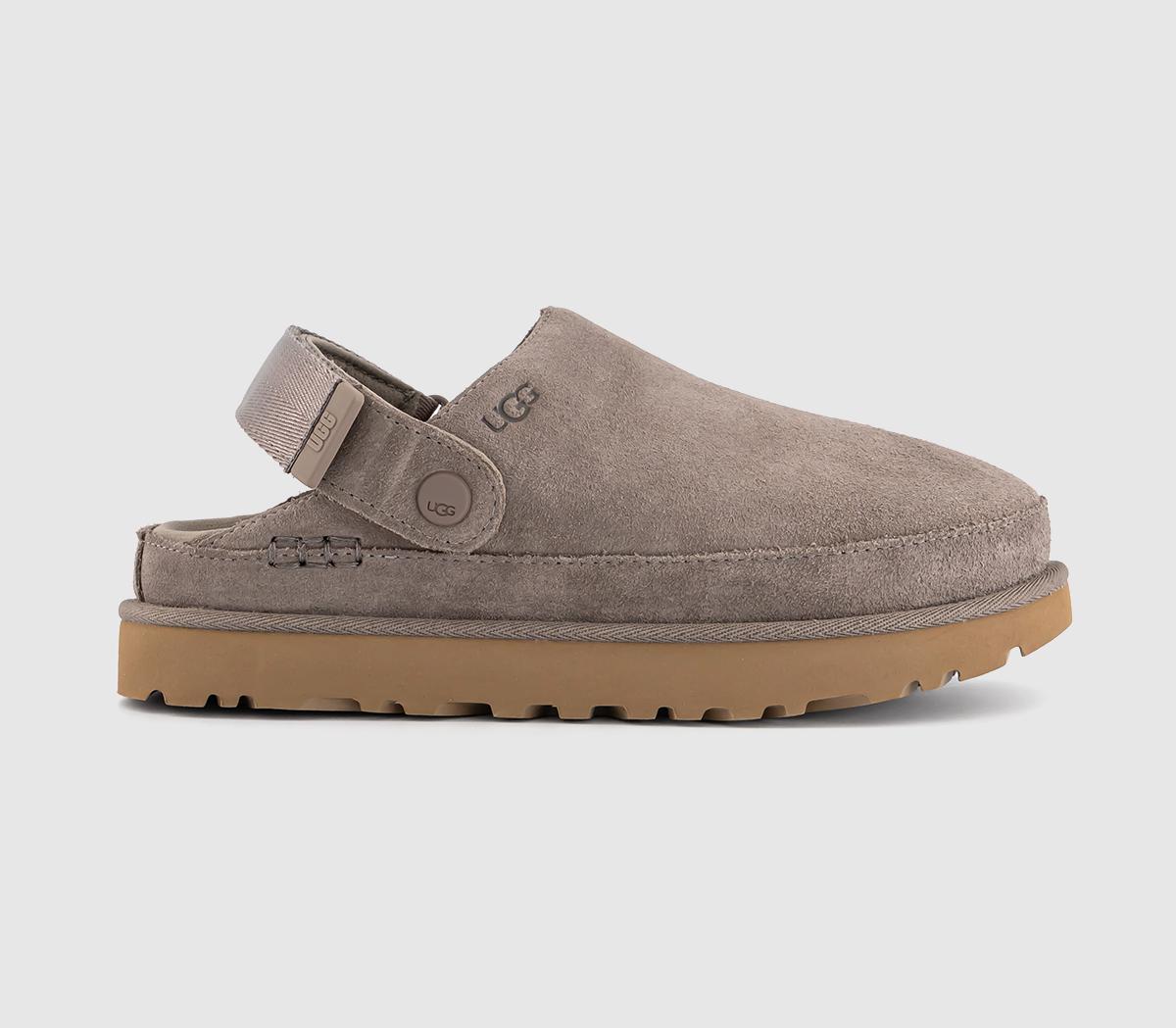 Introducing, the UGG Goldenstar Clog! With a suede upper and adjustable strap this is the perfect transitional mule to keep you comfy and cosy. A rubber outsole making these perfect for any surprise adventures. UGG branding on the front, sides and heel in Sand, completing the look.
