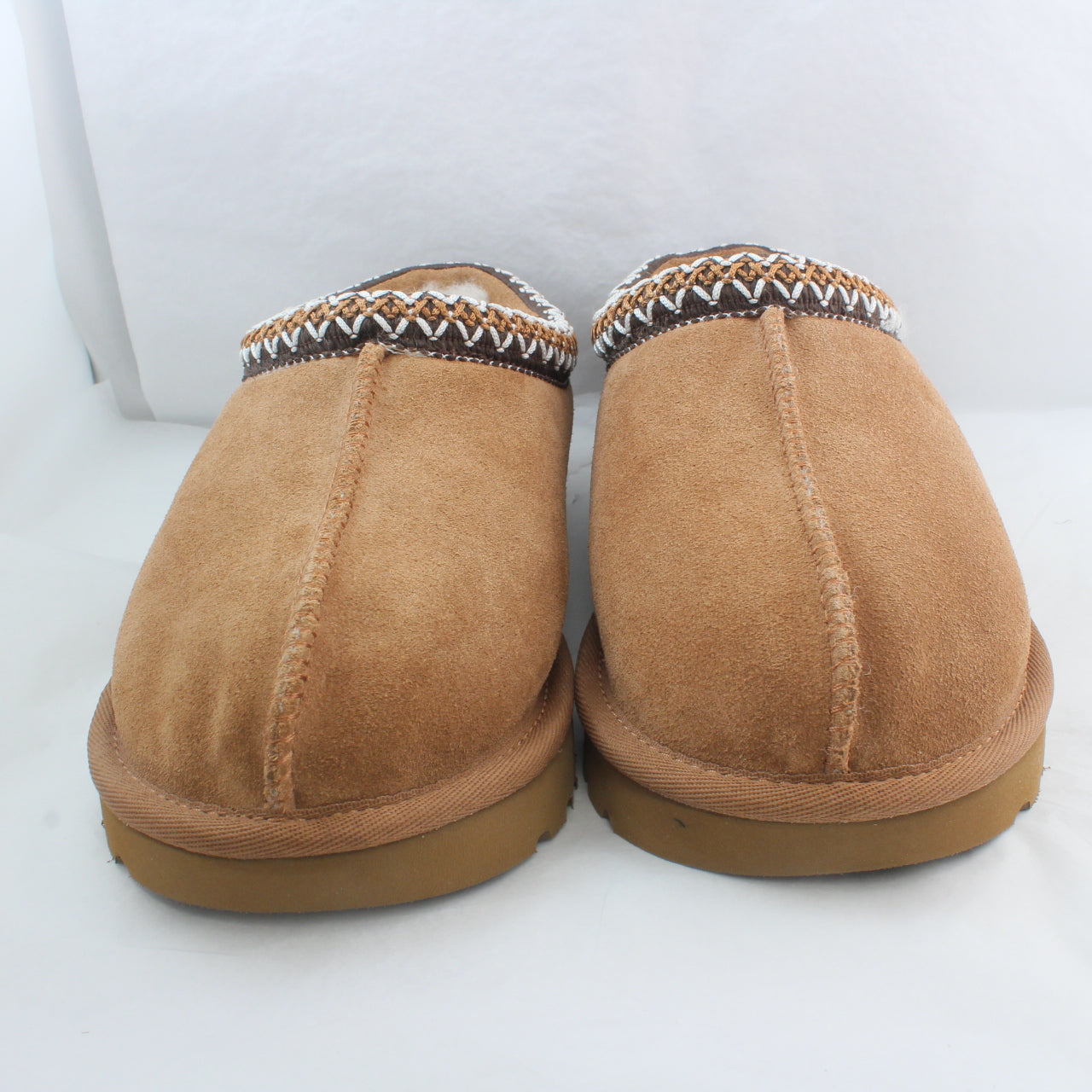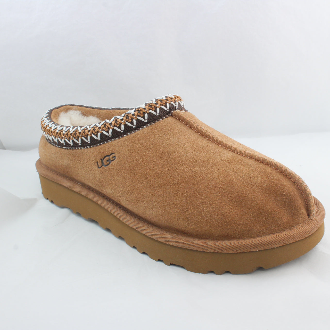 Sturdy, comfortable quality slip on silhouette featuring the same durable outsole as the iconic UGG Classic Boot. Crafted with velvety suede, plush natural wool and an embroidered braided detailing. Classic chestnut colourway